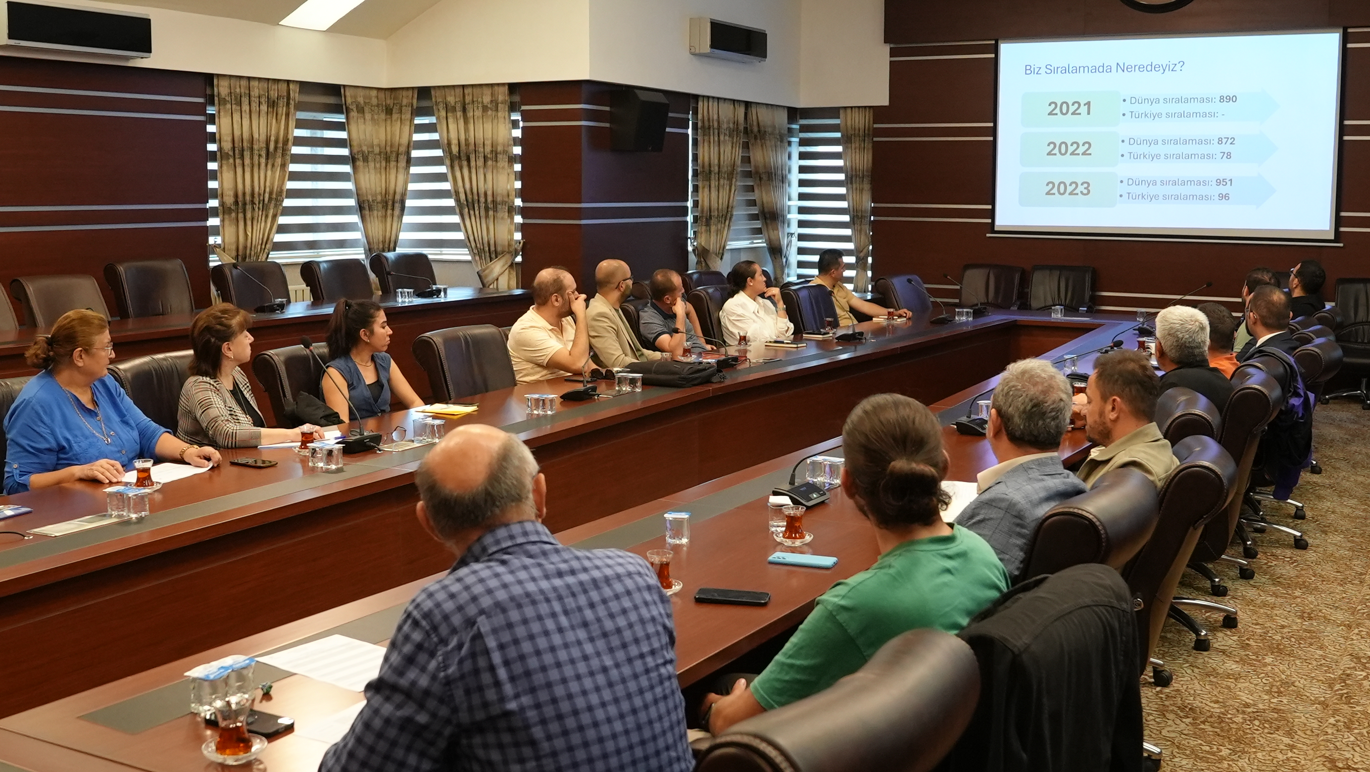 Toplantıda, sürdürülebilirlik ve çevre dostu uygulamalarla üniversitemizin sıralamalarda yükselmesi ve başarılar elde etmesi için yapılacaklar üzerinde duruldu. Bu yeni girişim, üniversitemizin çevre bilincini artırmak ve sürdürülebilir gelişime katkıda bulunmak adına önemli bir adım olarak değerlendirildi.